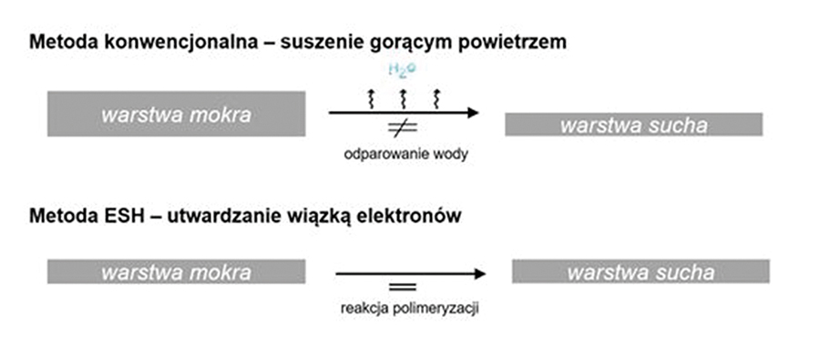 Utwardzanie strumieniem elektronów to proces, w którym wykorzystuje się wiązkę przyspieszonych elektronów, w celu zapoczątkowania reakcji chemicznych (polimeryzacji). W metodzie konwencjonalnej suszenie odbywa się przy użyciu gorącego powietrza.