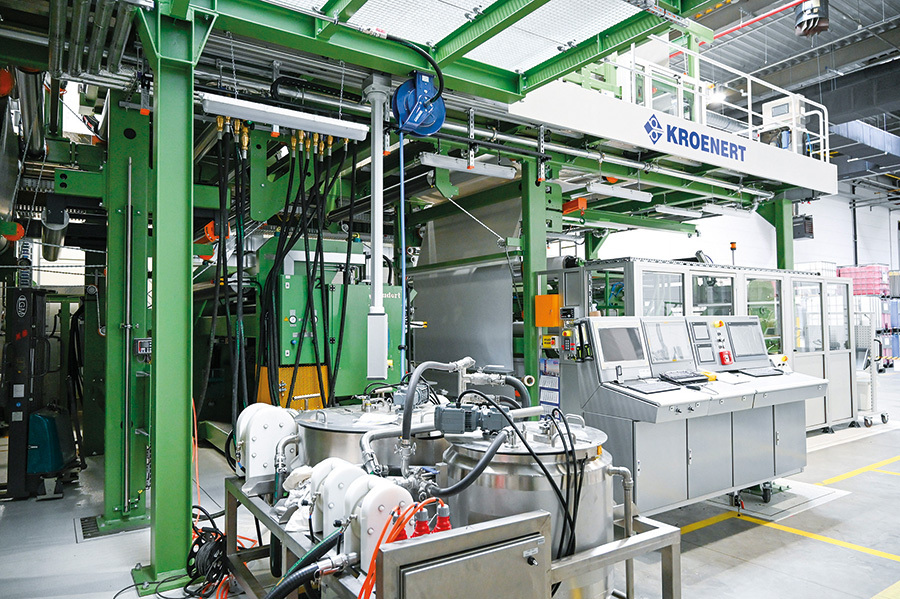 Nowa maszyna jest więc odpowiedzią na wymogi szwedzkiego koncernu związane z eliminacją formaldehydu z komponentów wykorzystywanych do produkcji folii oraz nawiązuje do nowych regulacji niemieckich z 2020 r. (EN 16516).
