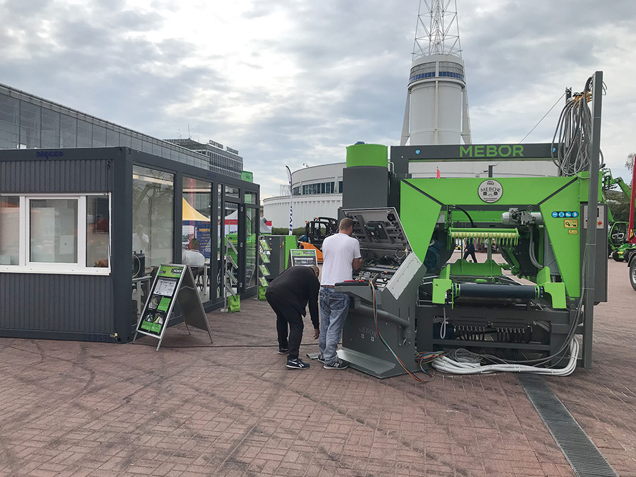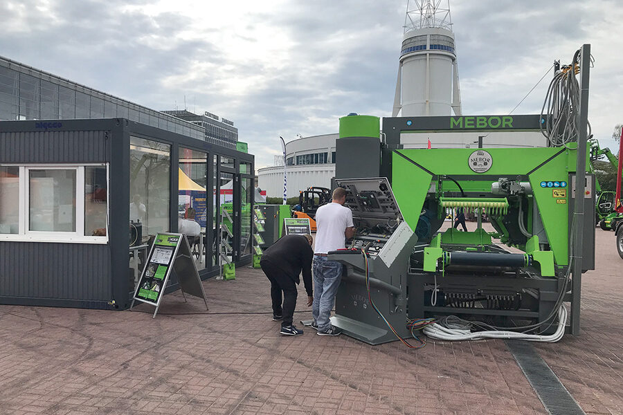 Na zewnętrznych stoiskach można było zapoznać się z rozwiązaniami tartacznymi i do wstępnej obróbki drewna. Na zdjęciu urządzenia Mebor oraz Holtec i Baljer&Zembrod. Fot. KD MEDIA