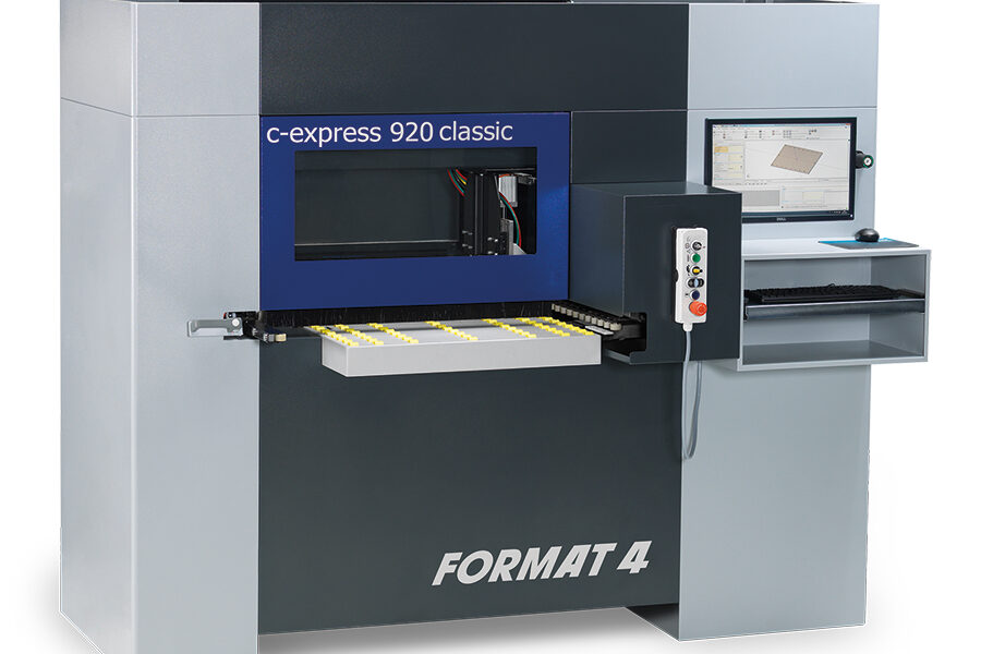 Przechodząc do kolejnego etapu jakim jest wiercenie z wykorzystaniem sterowanego numerycznie centrum wiertarsko-frezującego c-express 920 classic Format4 zastosowane zostaną, przesłane wcześniej programy NC oraz indywidualny kod kreskowy umieszczony na etykiecie. Po użyciu bezprzewodowego czytnika, czynności operatora są ograniczone tylko do wprowadzenia formatki do maszyny i zatwierdzenia gotowości do obróbki. Centrum przelotowe CNC c-express 920 classic automatycznie obrobi każdy element z 5 stron, co średnio zajmie mu poniżej 50 sekund i gotowy element odda z powrotem do rąk operatora. Operator otrzyma formatkę z powierconym rowkiem pod plecy szafki oraz, jeżeli będzie taka konieczność, z wyfrezowanymi kształtami np. pod listwę podłogową, czy listwy LED. W przypadku produkcji mebli kuchennych wykonanie blatu roboczego można również zrealizować za sprawą oprogramowania F4Design Platinum oraz tego wszechstronnego centrum wiertarsko-frezującego. Zaprojektowany wcześniej blat kuchenny zostanie obrobiony zgodnie z życzeniem projektanta np. z połączeniami typu „hokejka” lub wyfrezowane zostaną otwory montażowe pod sprzęty kuchenne, z czym to szybkie i dokładne centrum CNC bez problemu sobie poradzi.